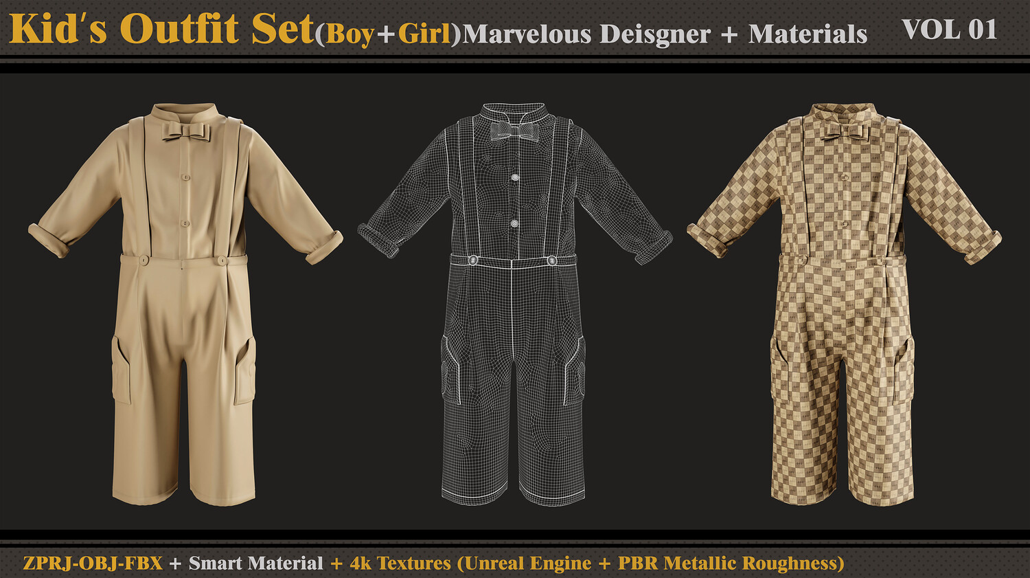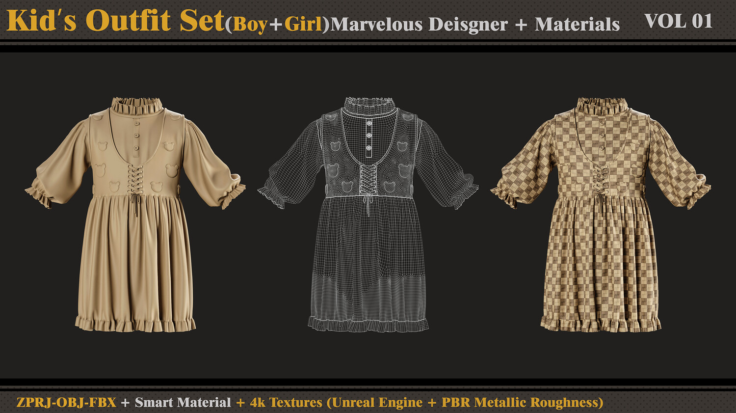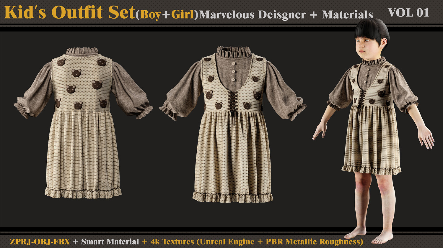 Kids Outfit Set-BOY & GIRL- MD-Clo3d-Smart Material- Textures-OBJ-FBX