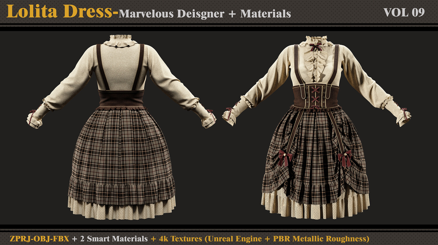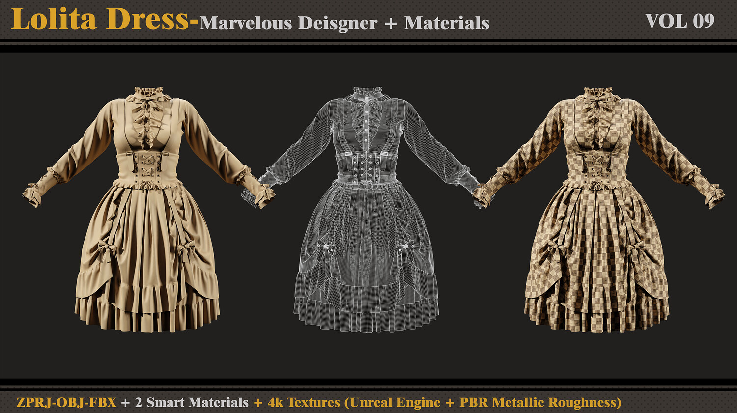 Lolita Dress -MD-Clo3d-Smart Material- Textures-OBJ-FBX