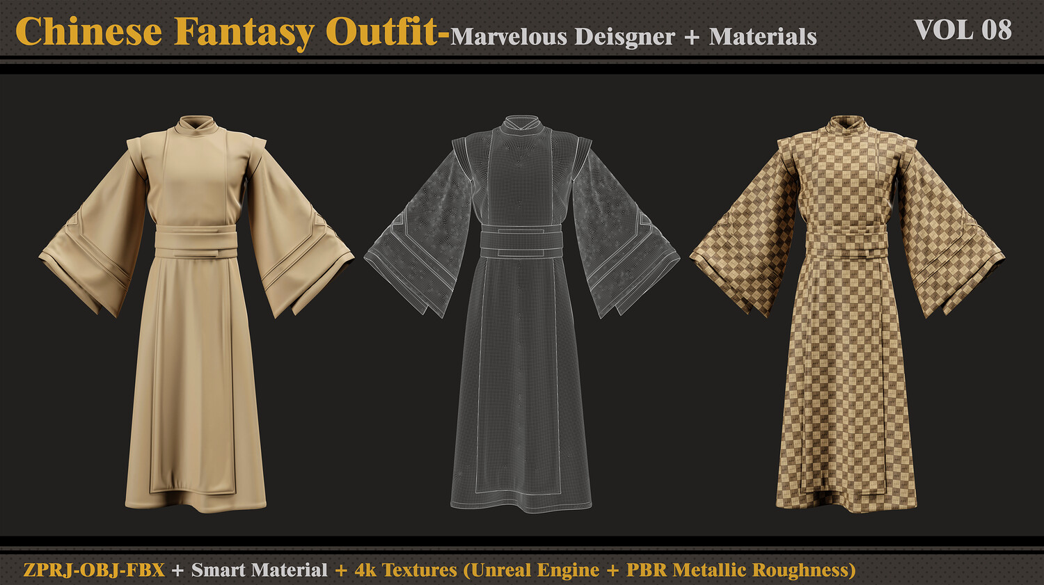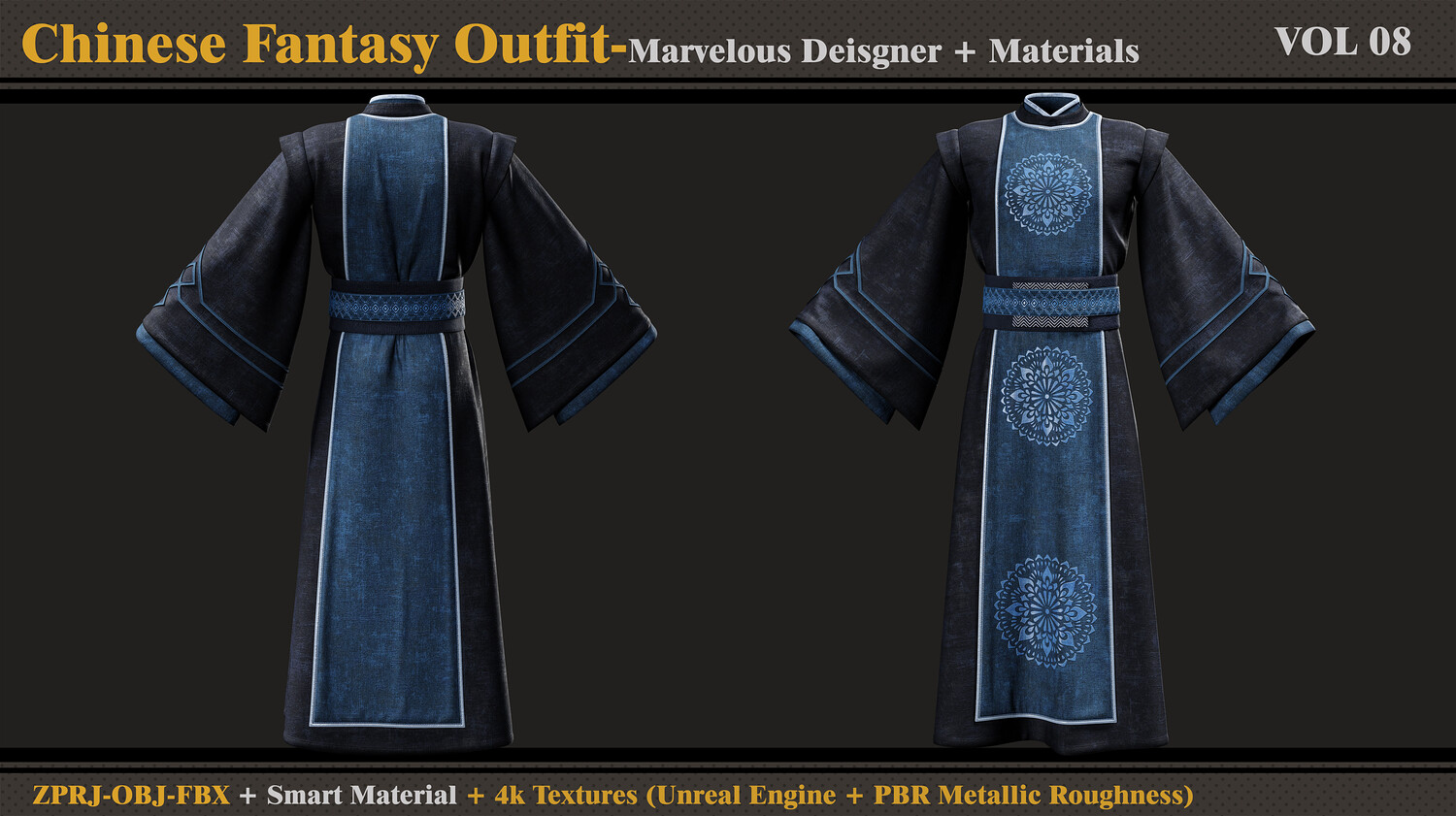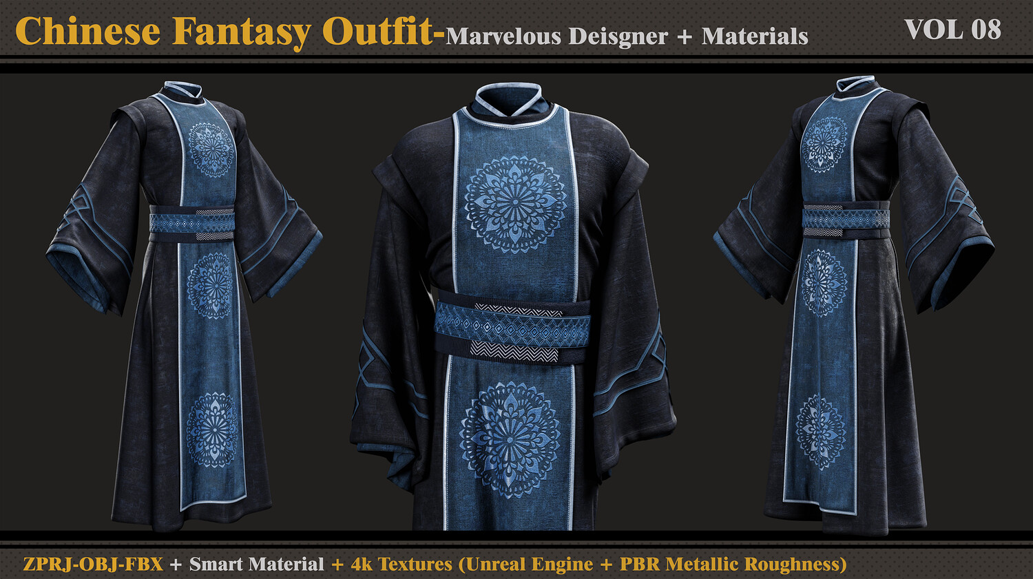 Chinese Fantasy Outfit-MD-Clo3d-Smart Material- Textures-OBJ-FBX