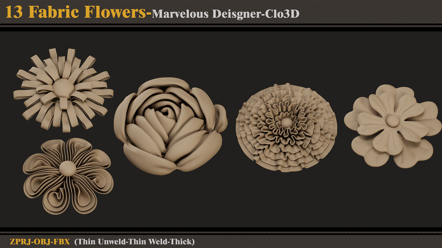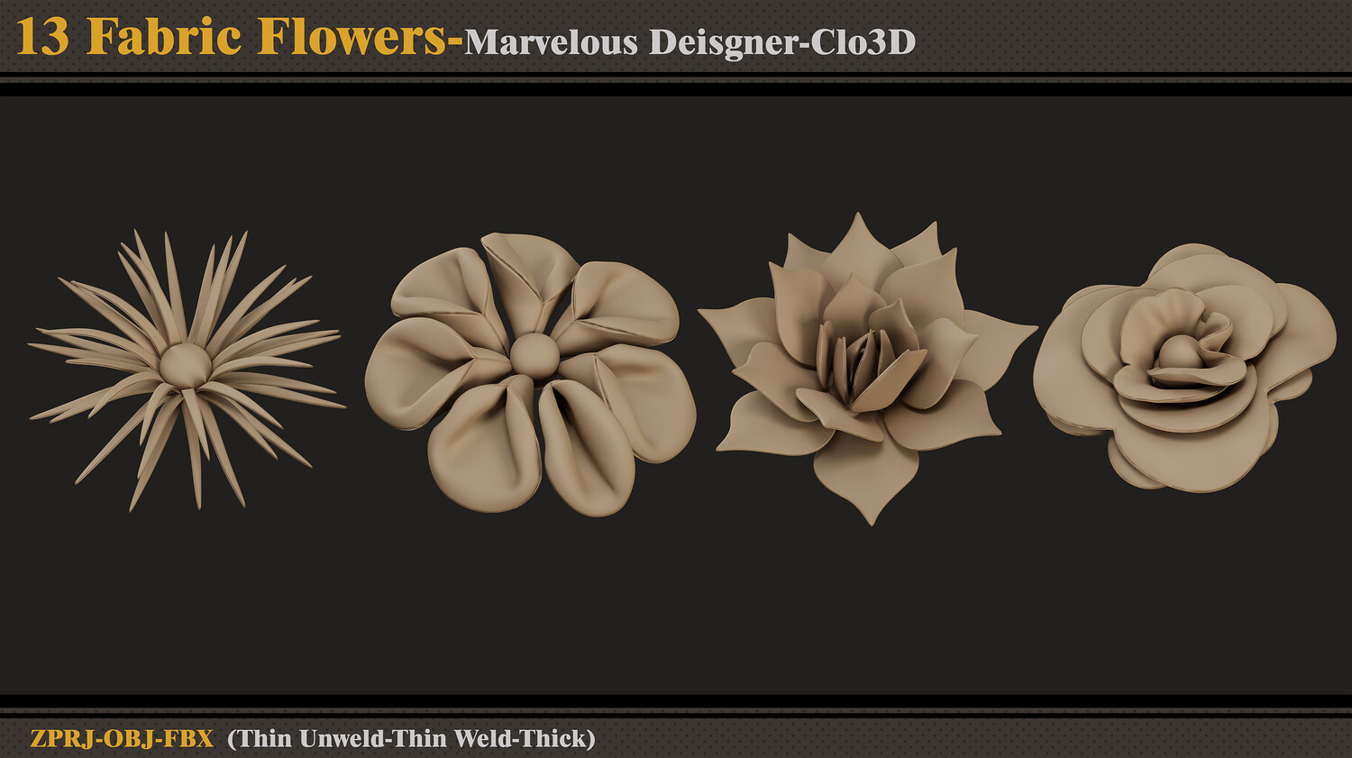 13 Fabric Flowers-MD-Clo3D-ZPRJ-FBX - OBJ