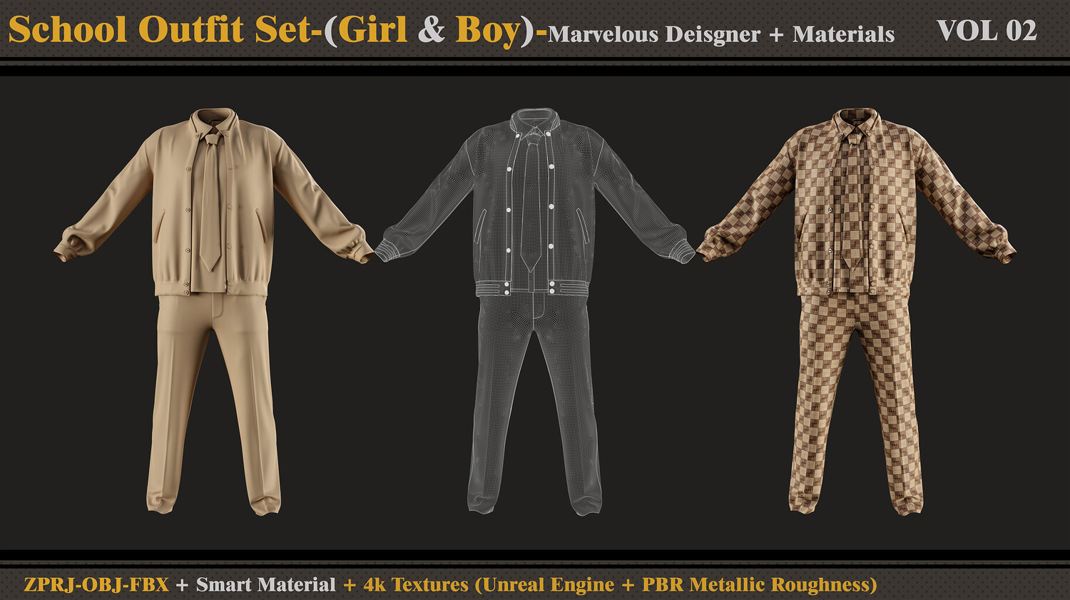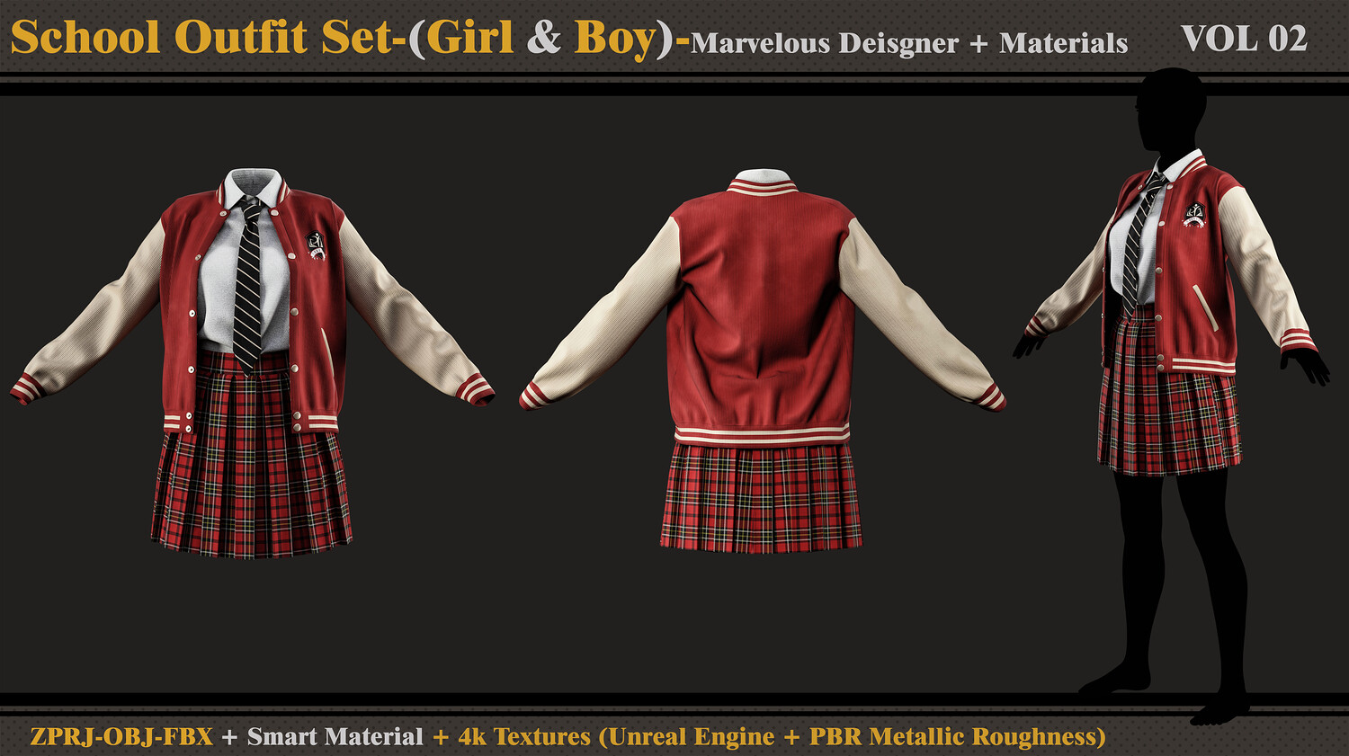 School Outfit Set- MD-Clo3d-Smart Material- Textures- OBJ-FBX