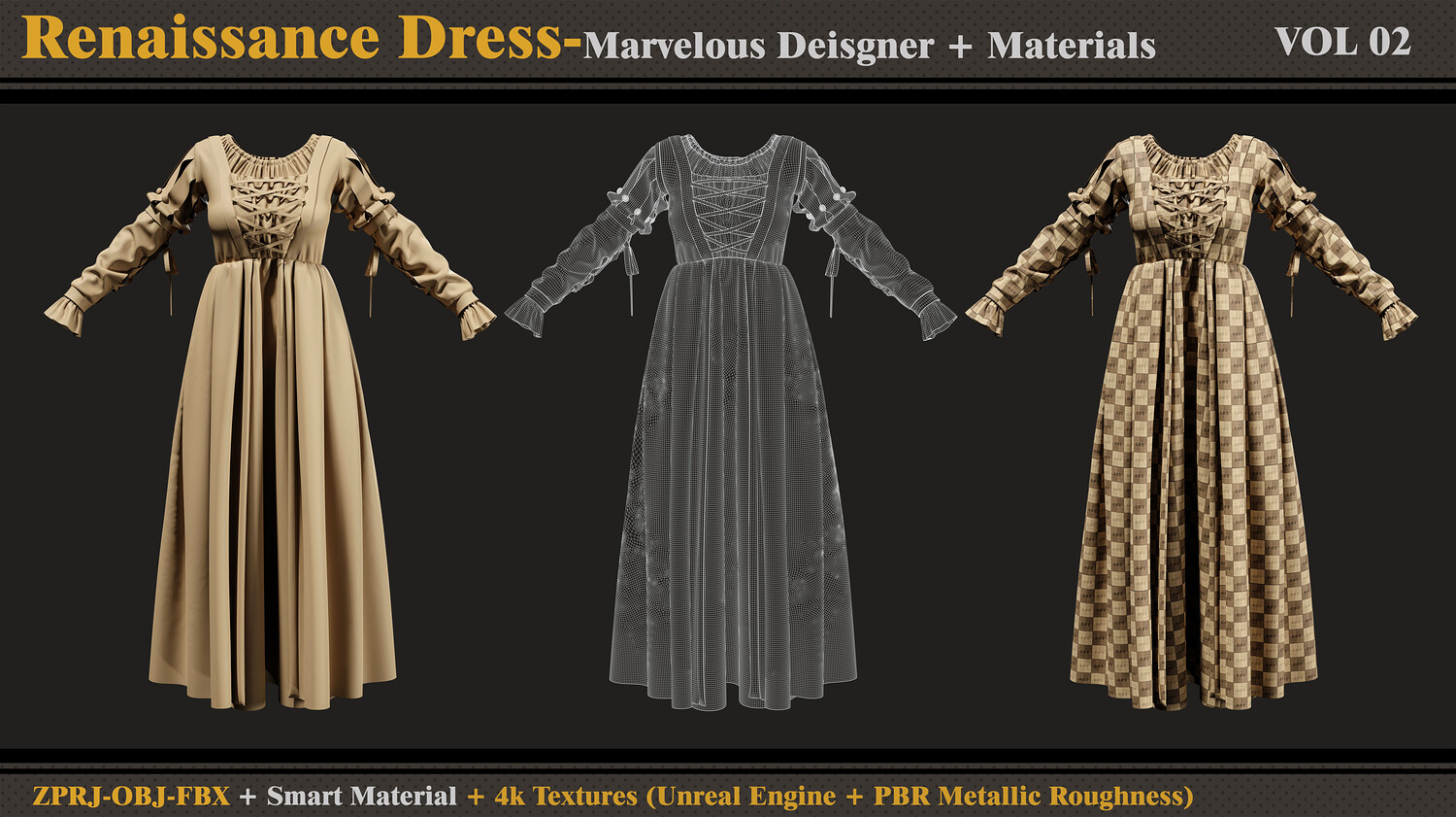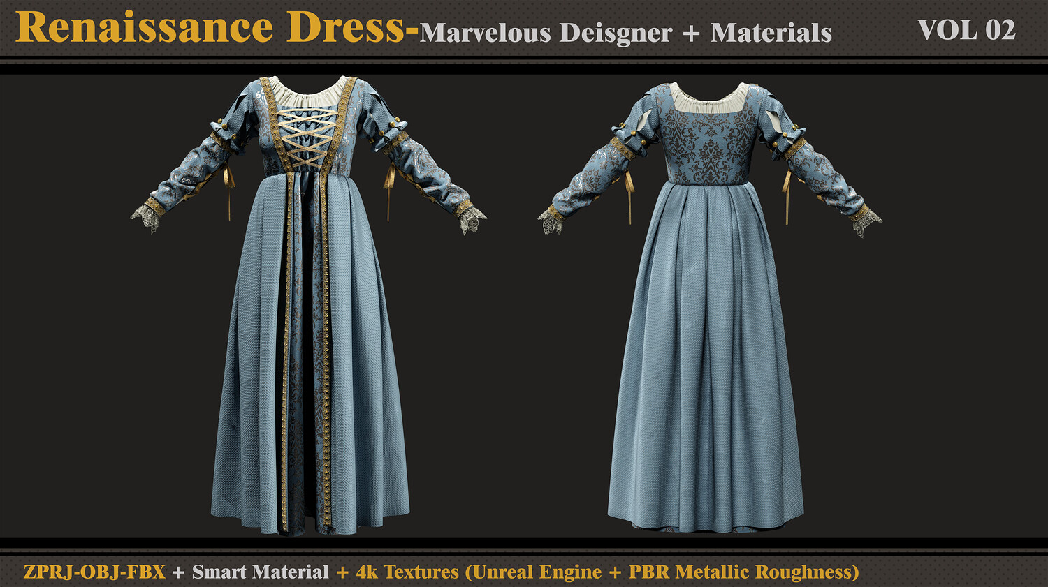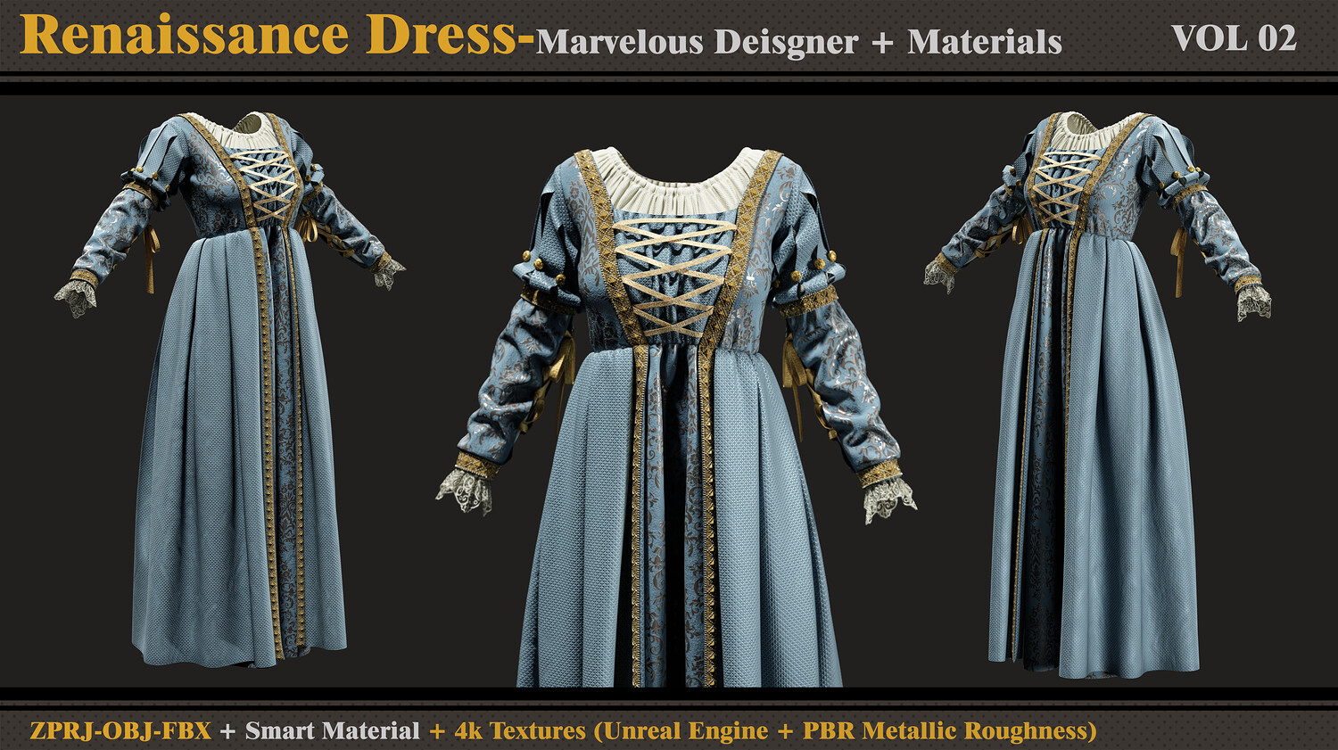 Renaissance Dress-MD-Clo3d-Smart Material- Textures-OBJ-FBX