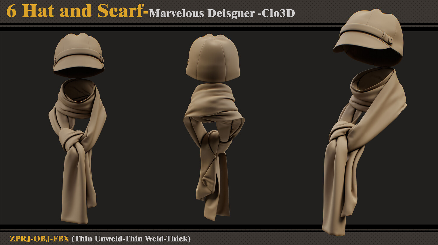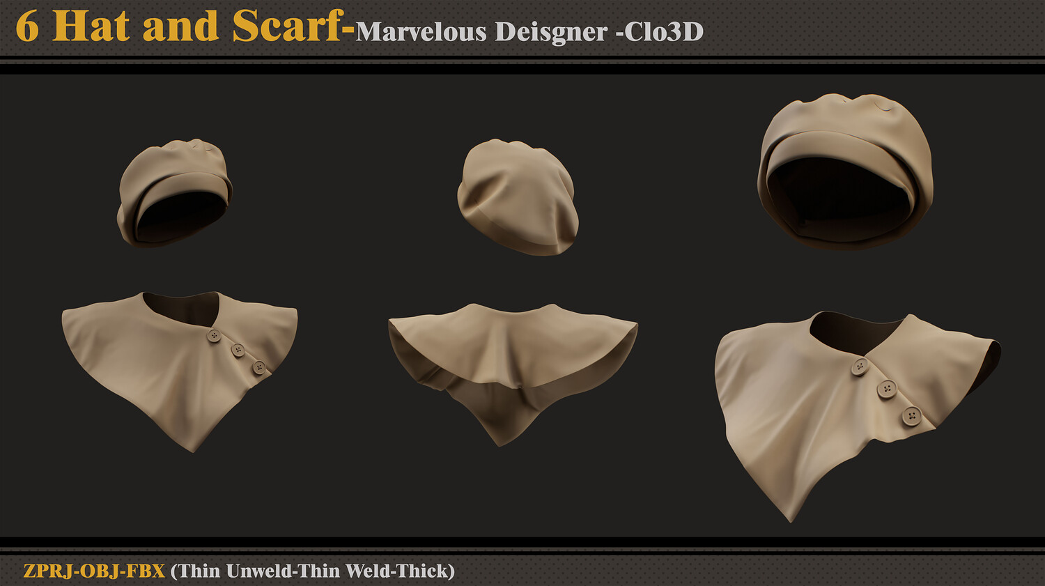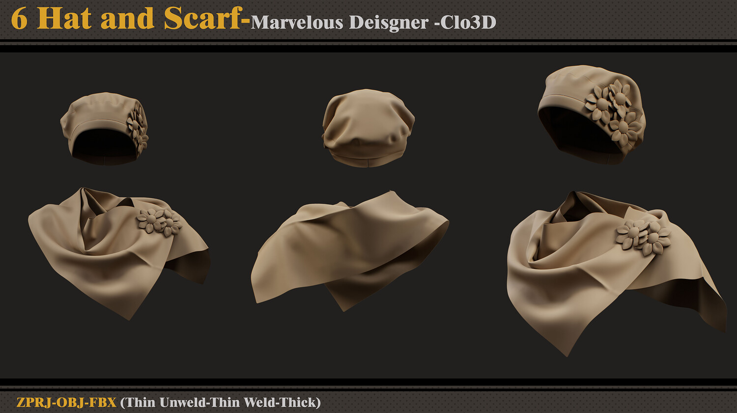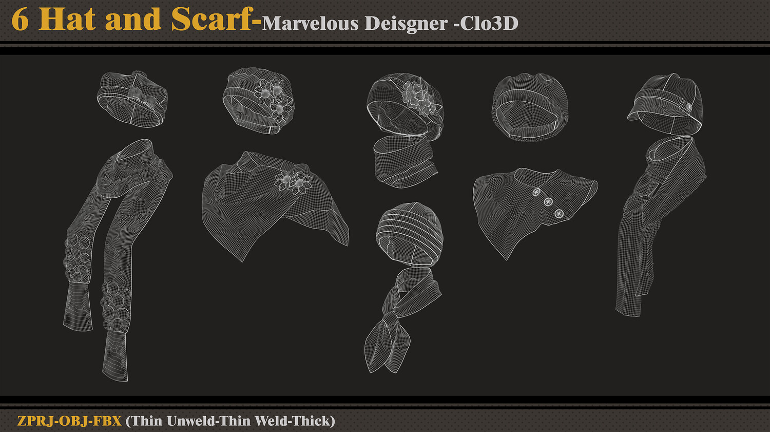 6 Women Hats and Scarfs-MD-CLo3D-ZPRJ-FBX-OBJ