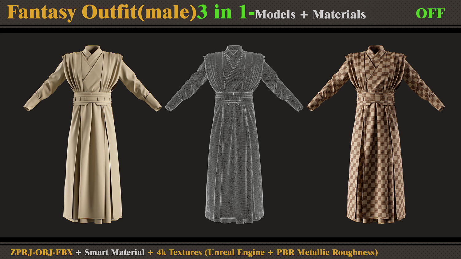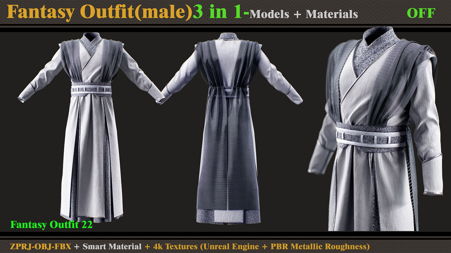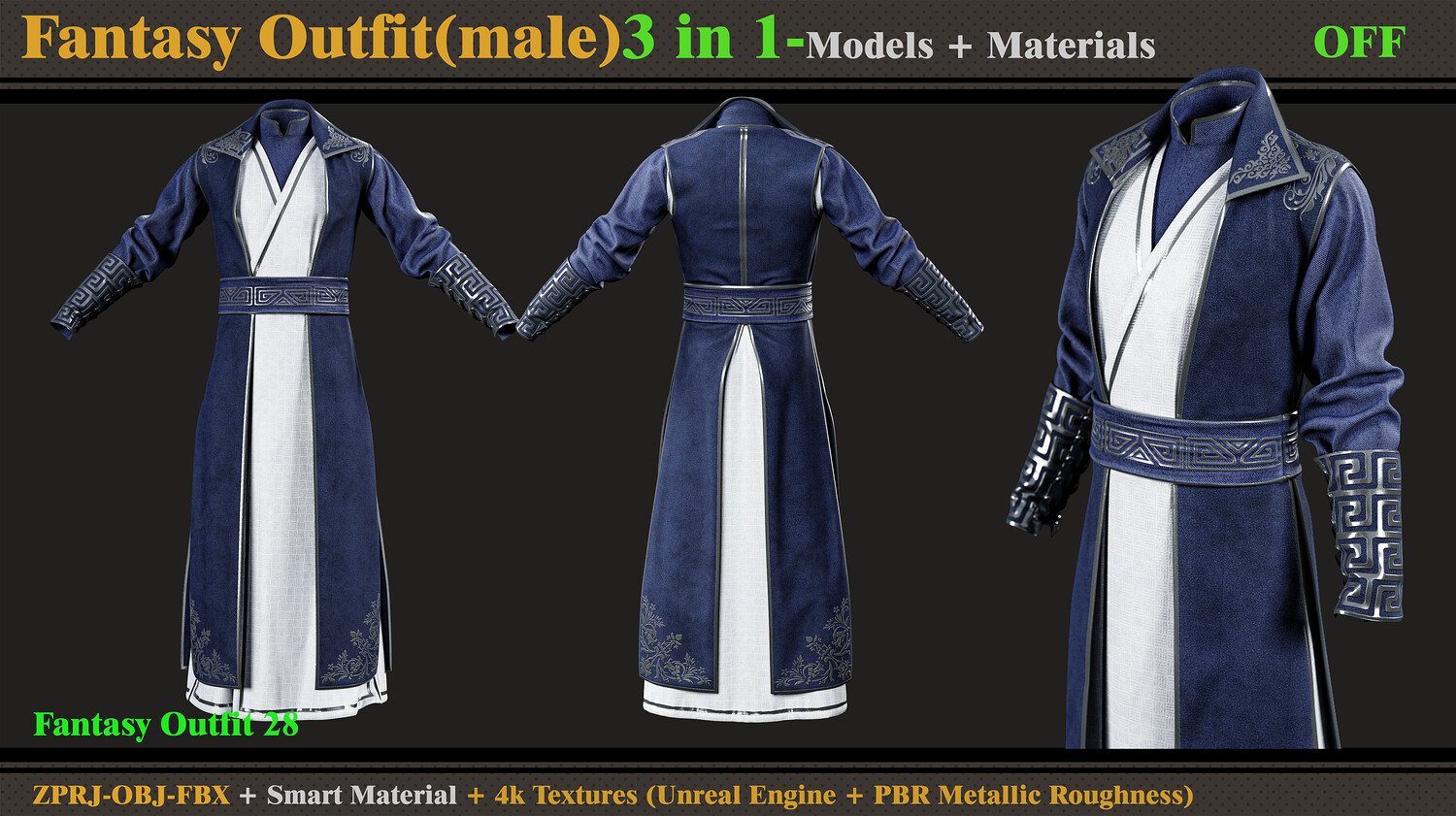 3 in 1 Fantasy Outfit-MD-Clo3d-OBJ- FBX -ZPRJ-Material-Textures