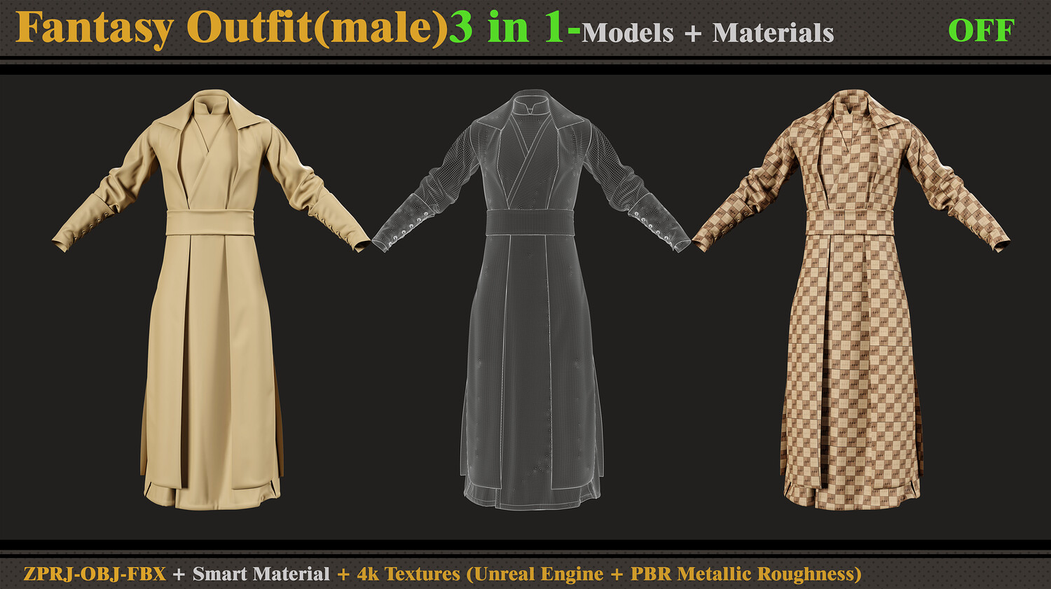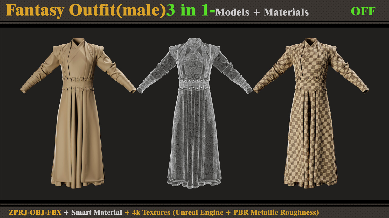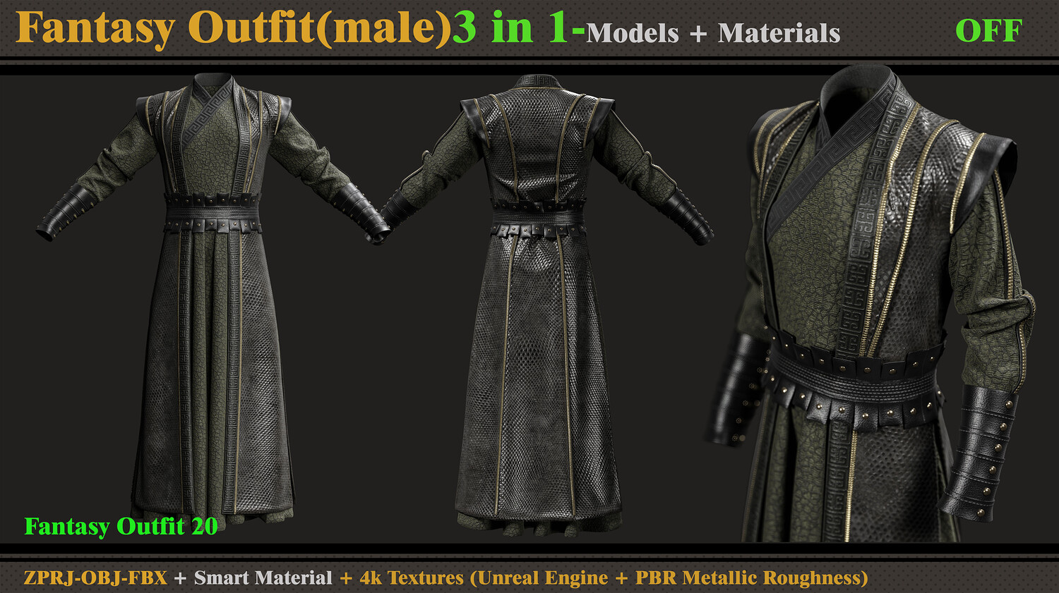 3 in 1 Fantasy Outfit-MD-Clo3d-OBJ- FBX -ZPRJ-Material-Textures
