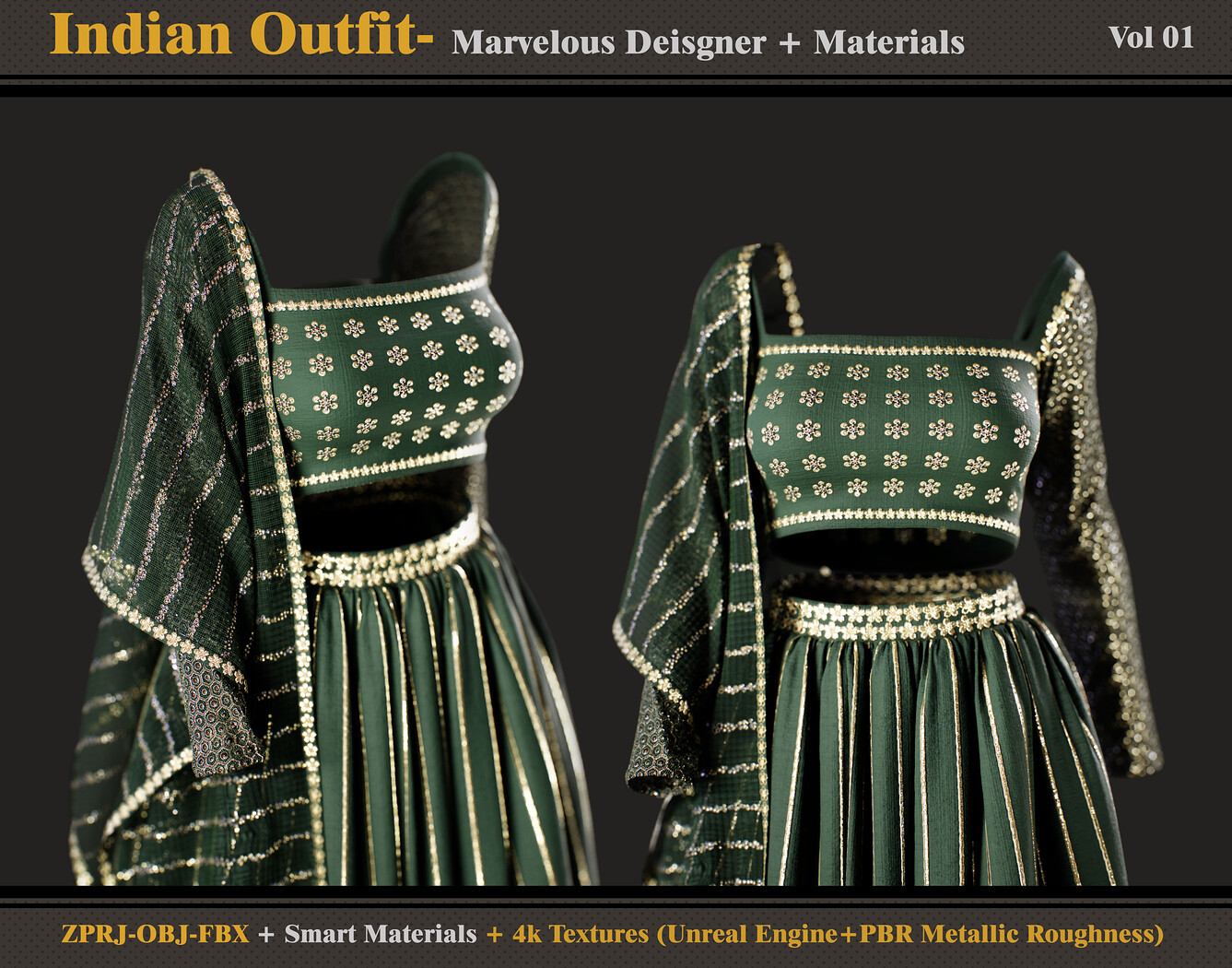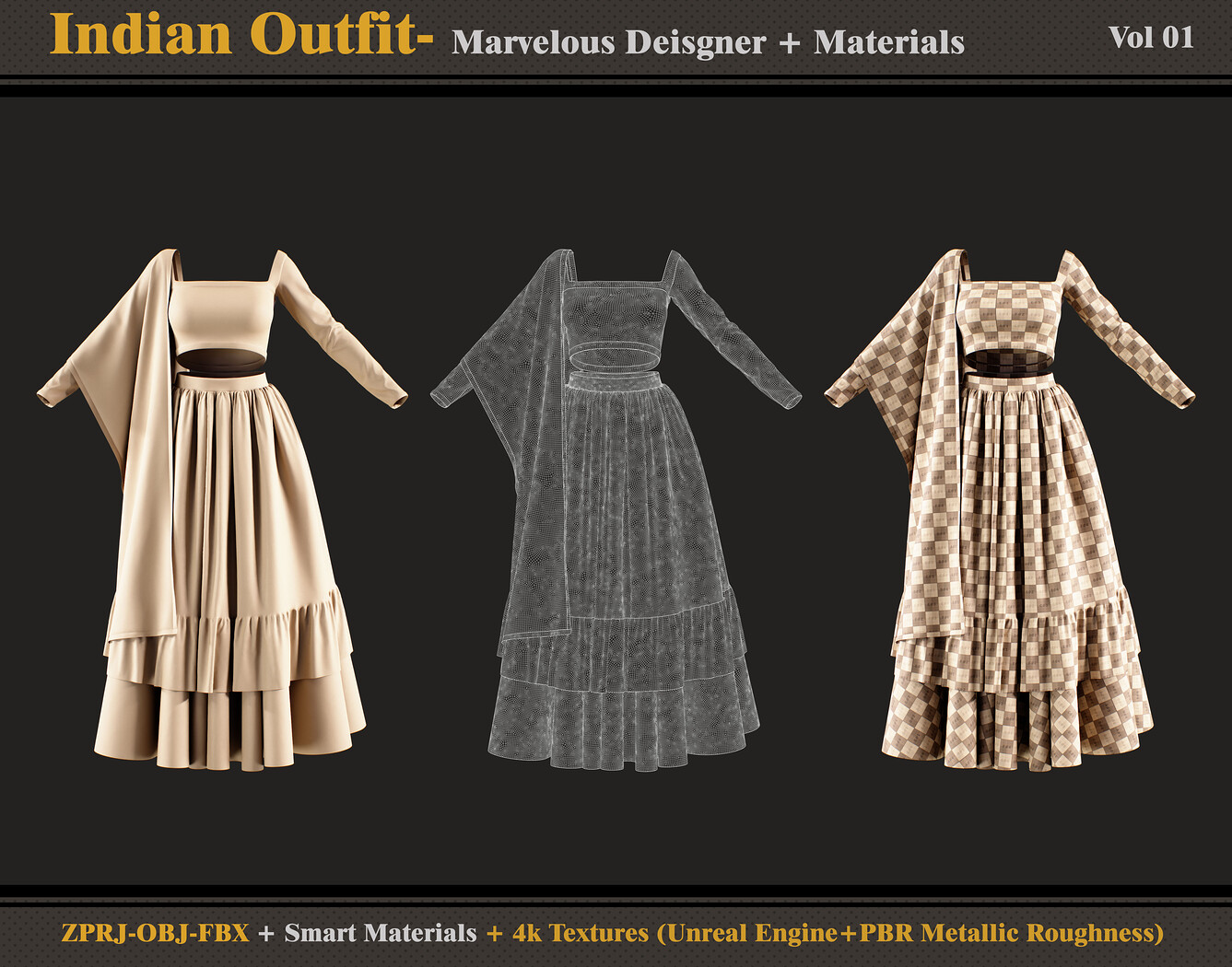 Hello ;) This product contains: - Marvelous Designer or Clo3D (ZPRJ) -A Pose - FBX and OBJ ( Thick and Thin Unweld and Thin Weld) - Smart Materials - 4k and PNG Texture (Unreal Engine + PBR Metallic Roughness) Attention - No retopology - Quad Mesh and Unwraped in Marvelous designer - Avatar - DazStudio Genesis 8 female