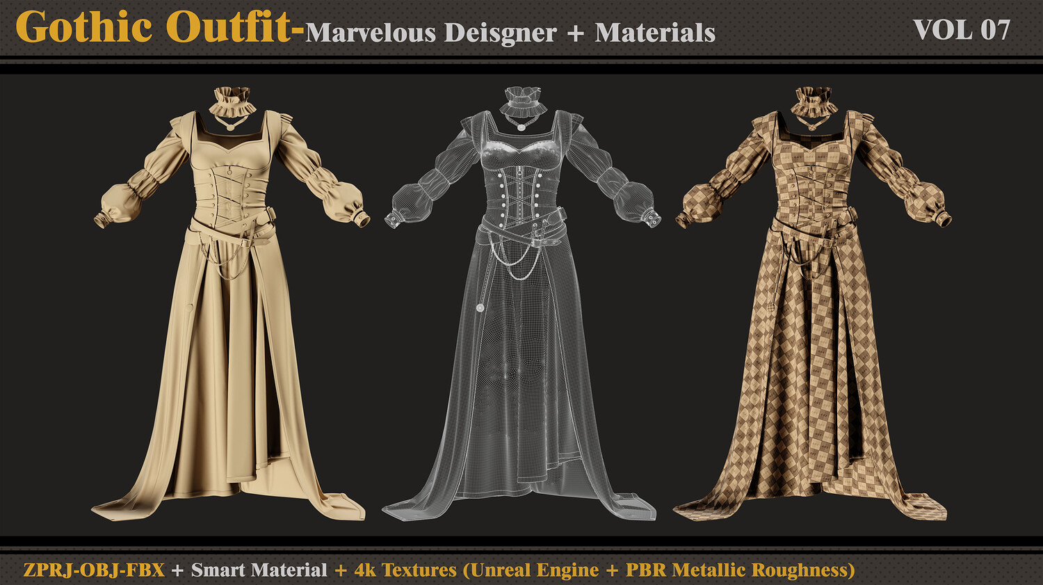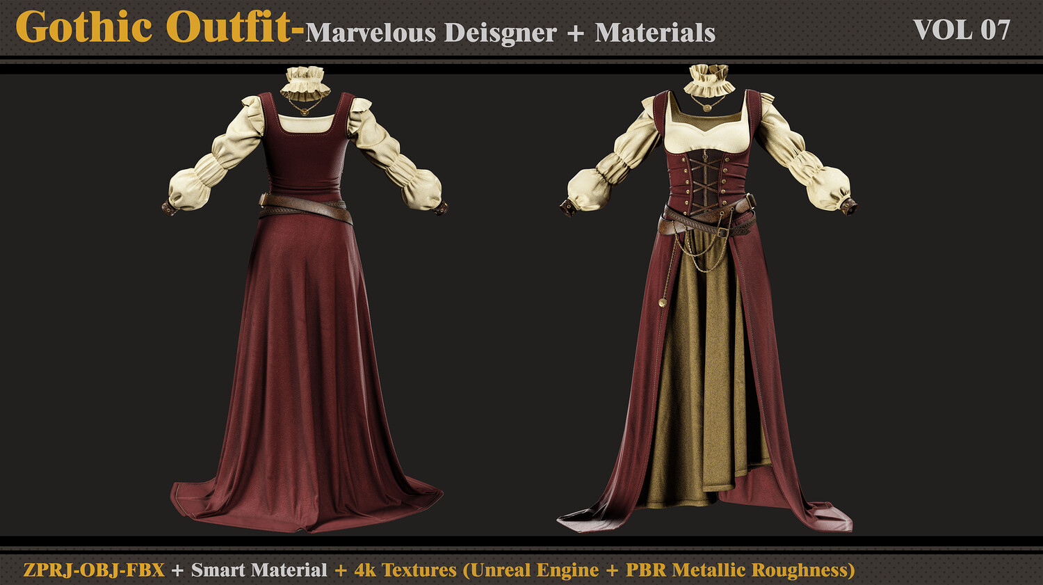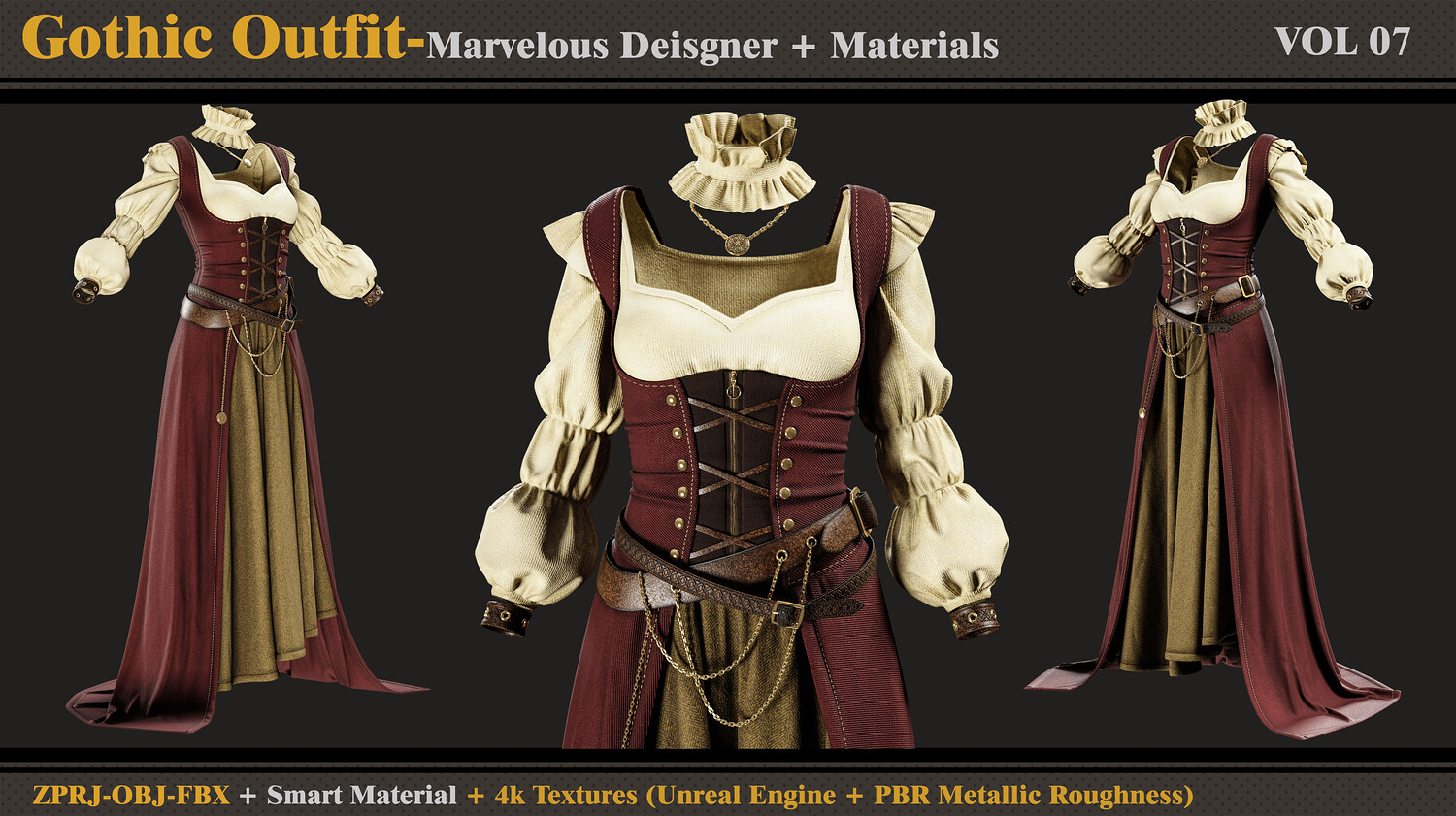 Gothic Dress-MD-Clo3d-Smart Material-4K Textures-OBJ-FBX