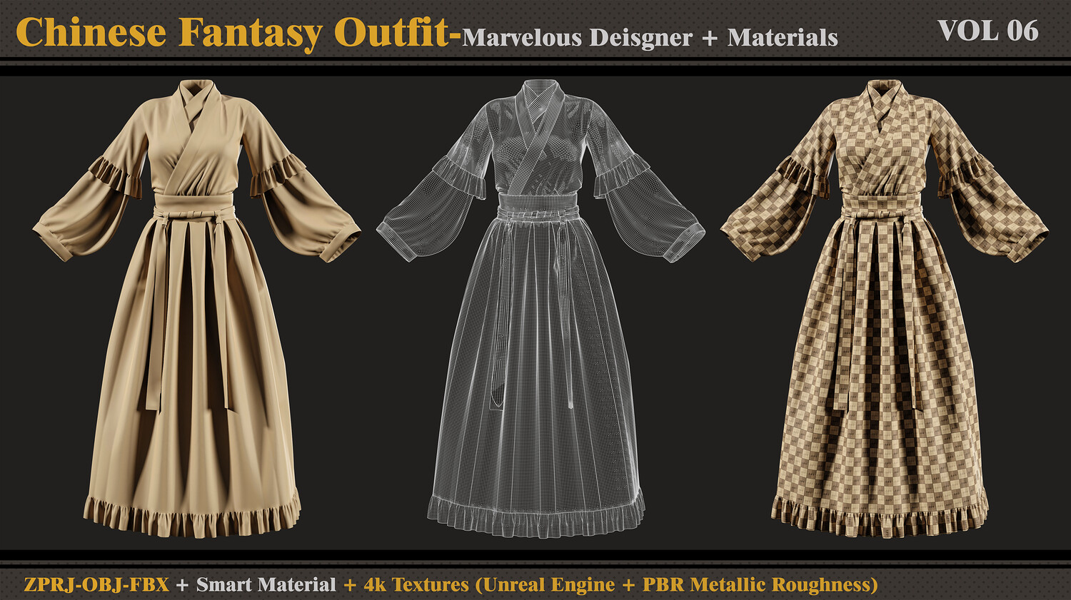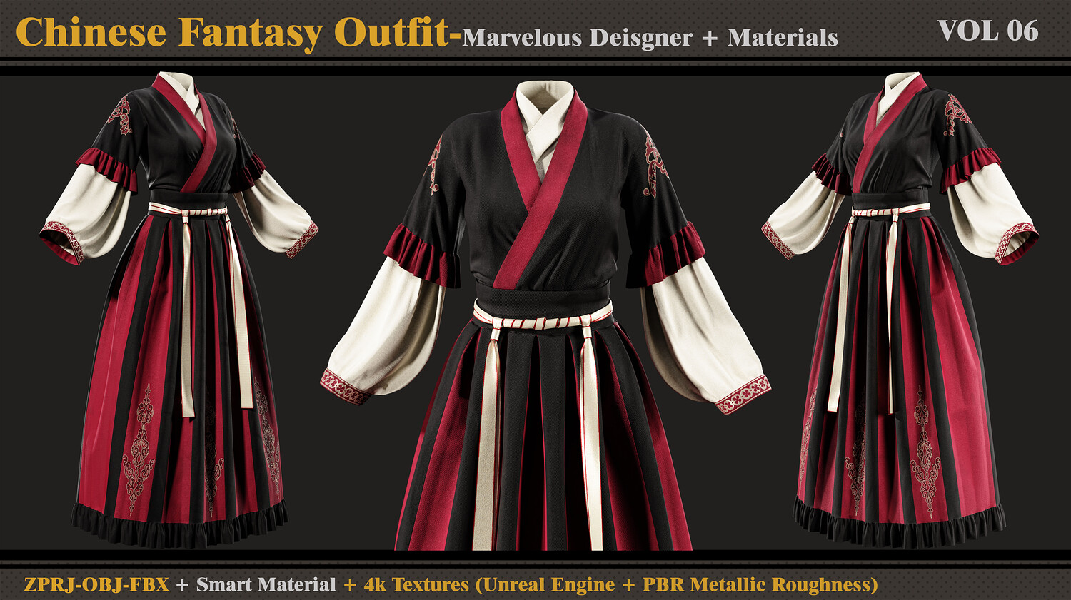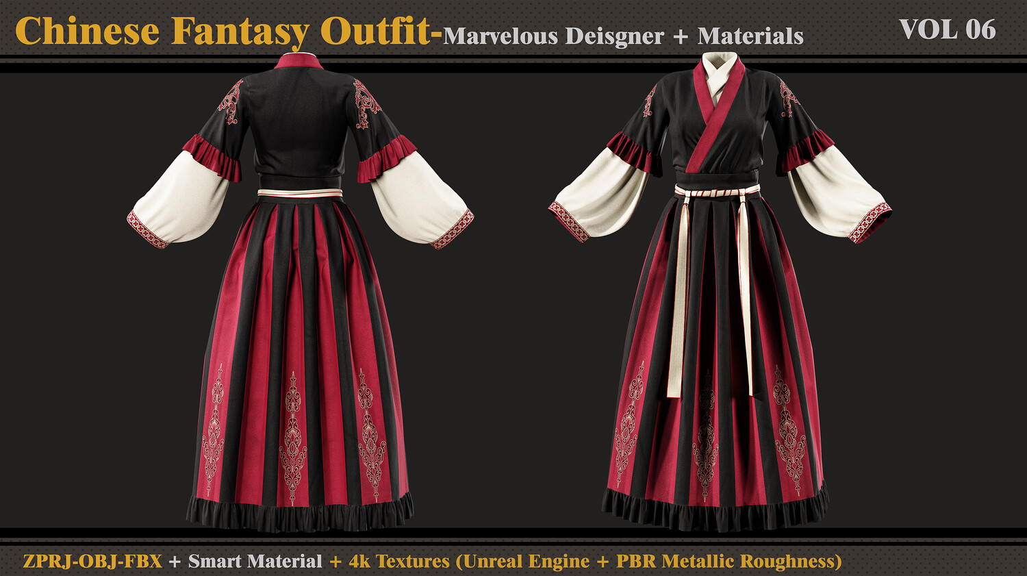 Chinese Fantasy Outfit-MD-Clo3d-Smart Material-Textures-OBJ-FBX