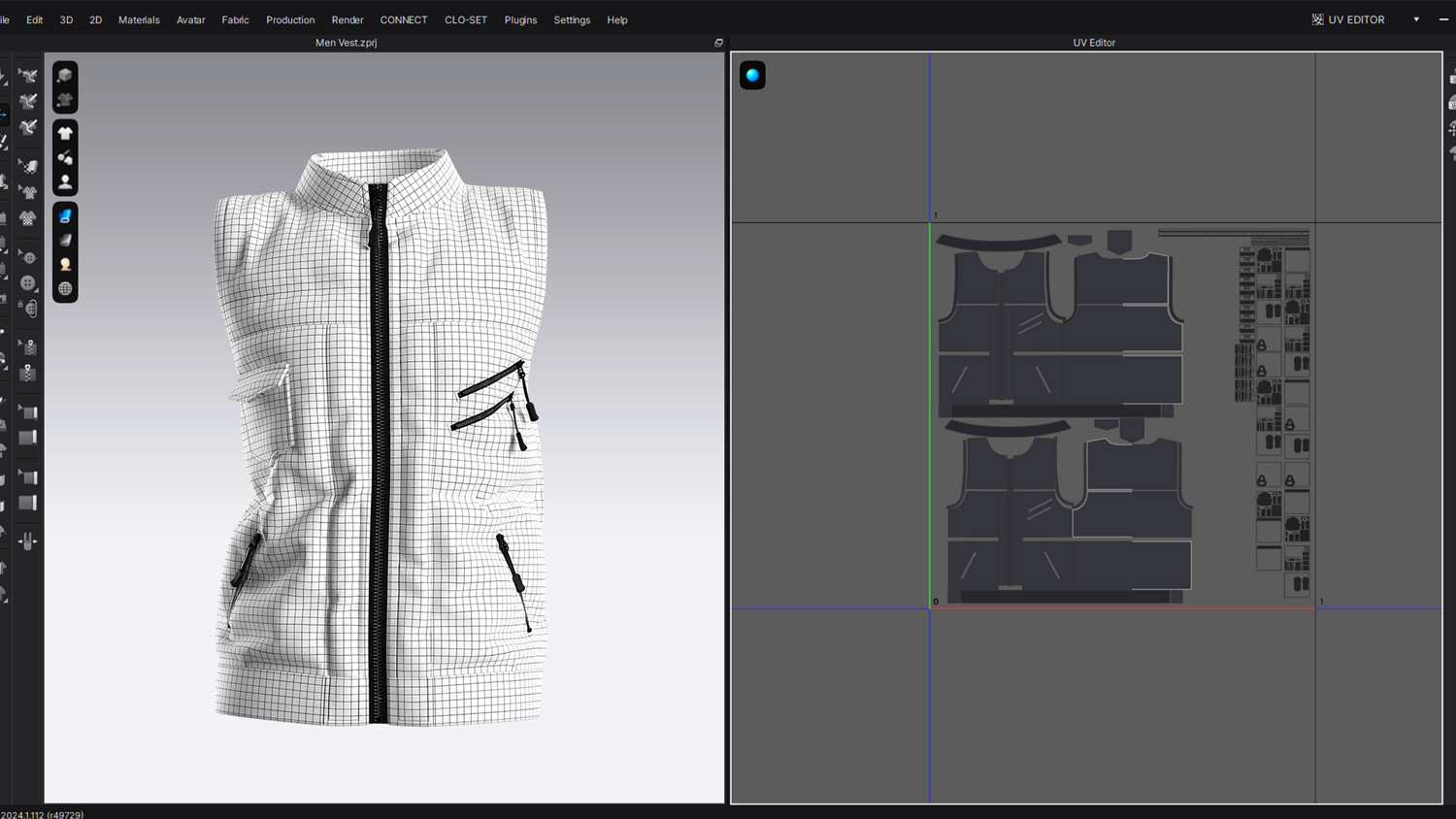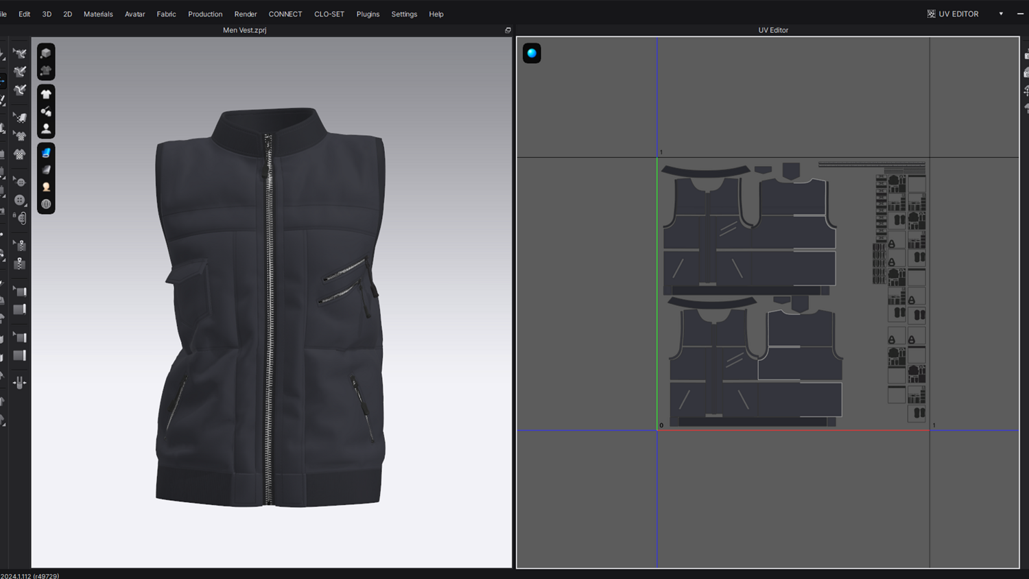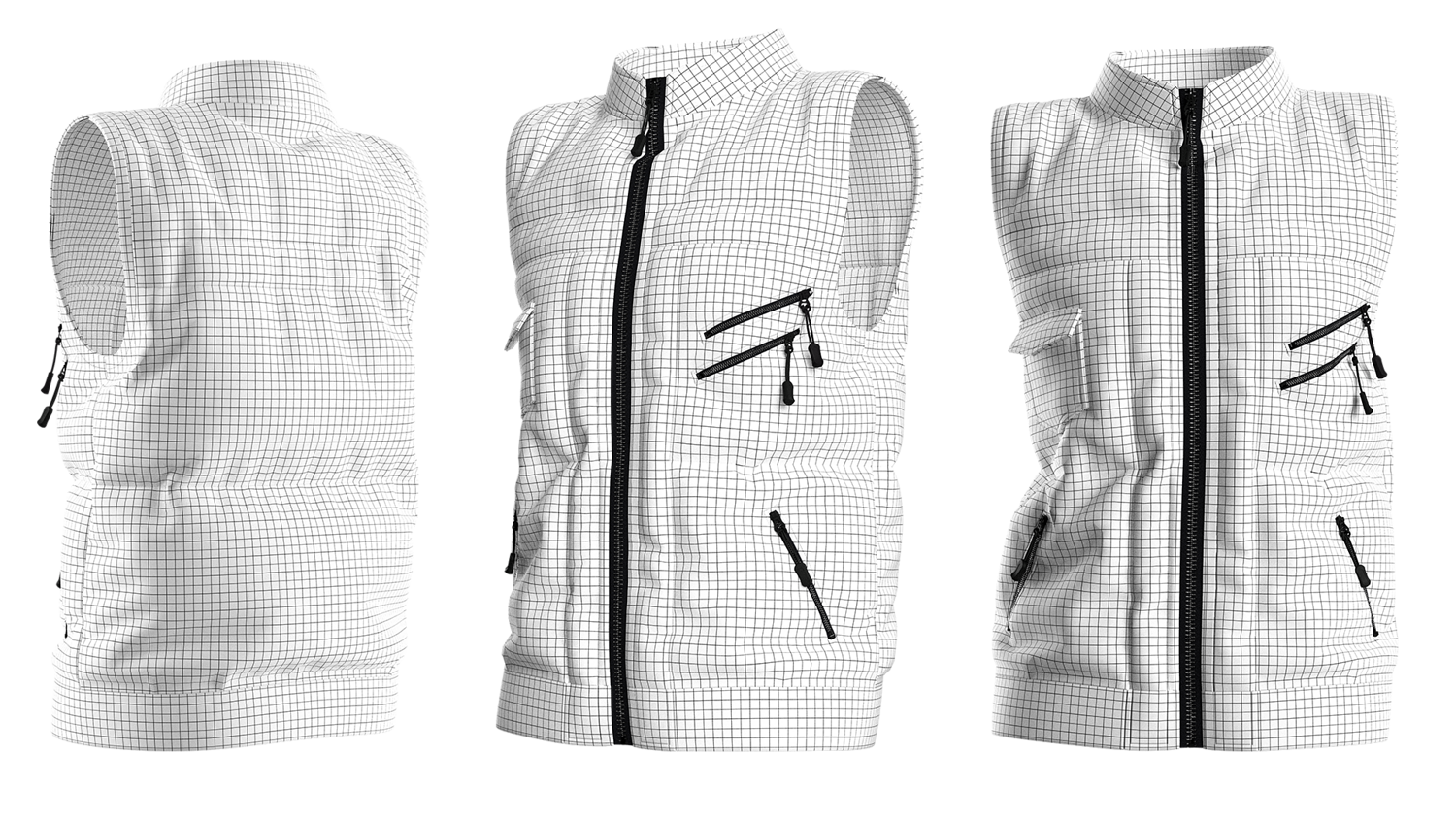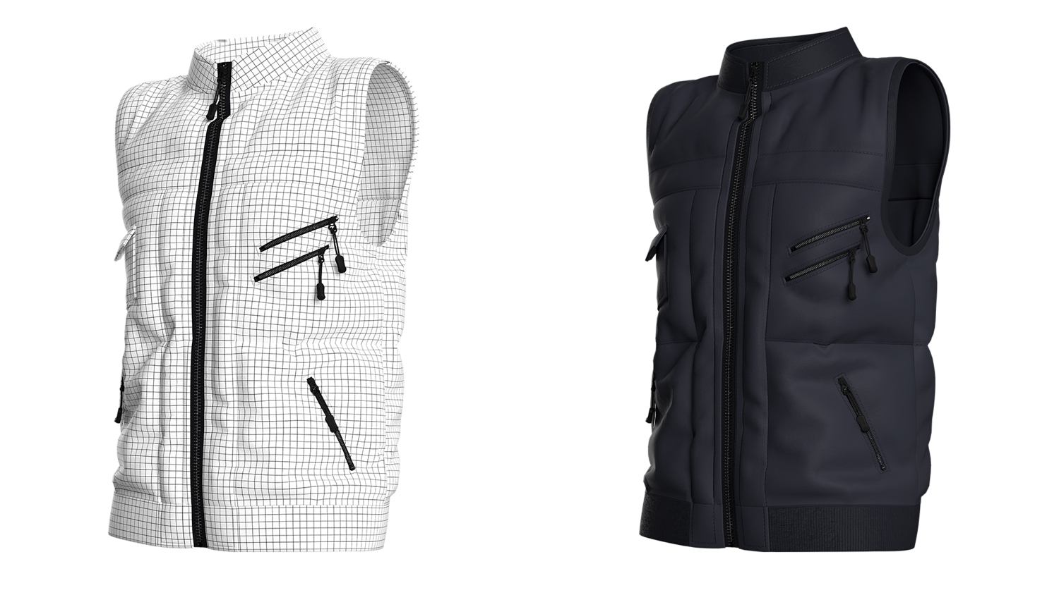 A modern black tactical vest with multiple zipper pockets and a sleek front-zip design. Perfect for 3D fashion, gaming characters, and realistic digital apparel projects.