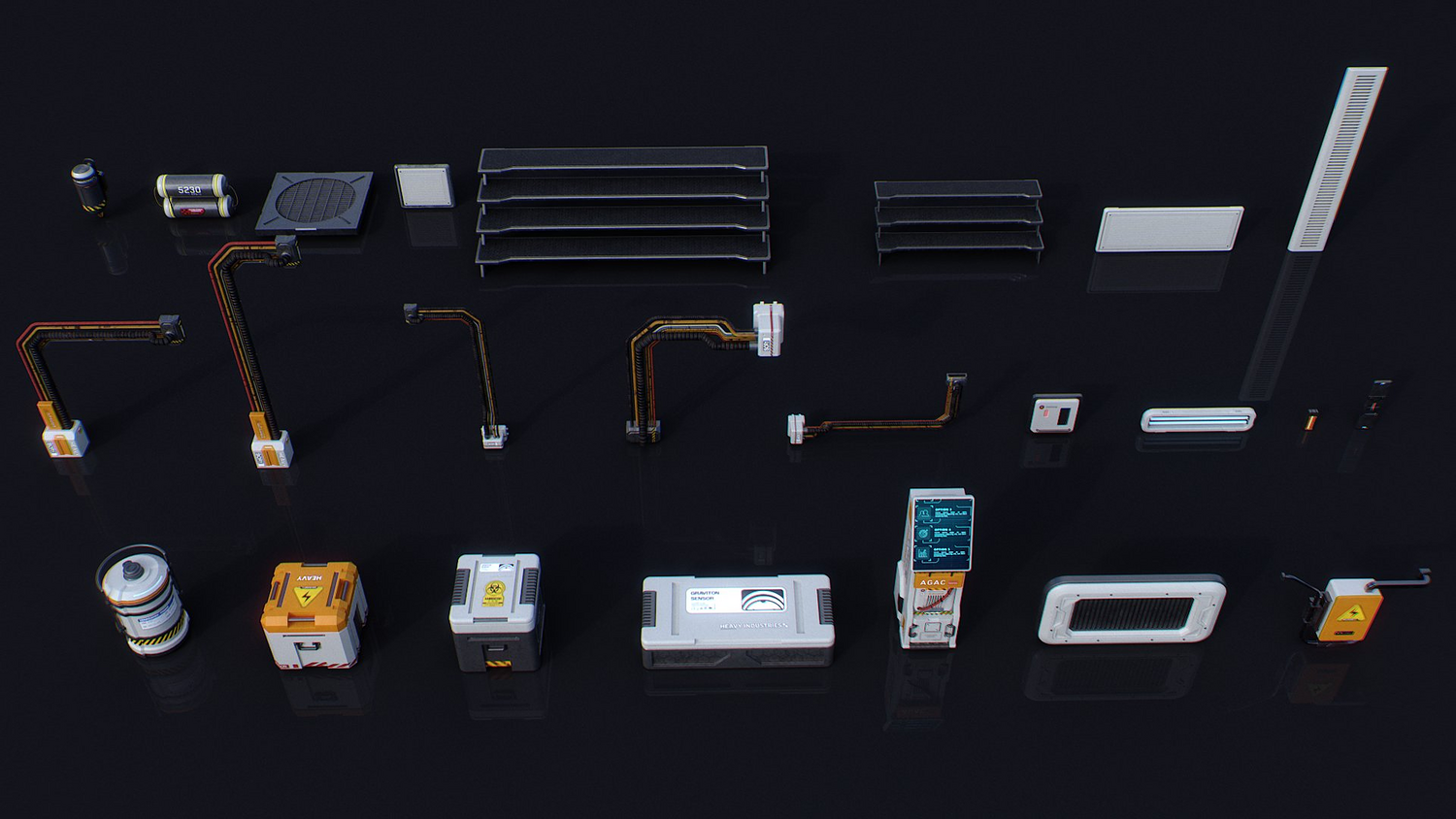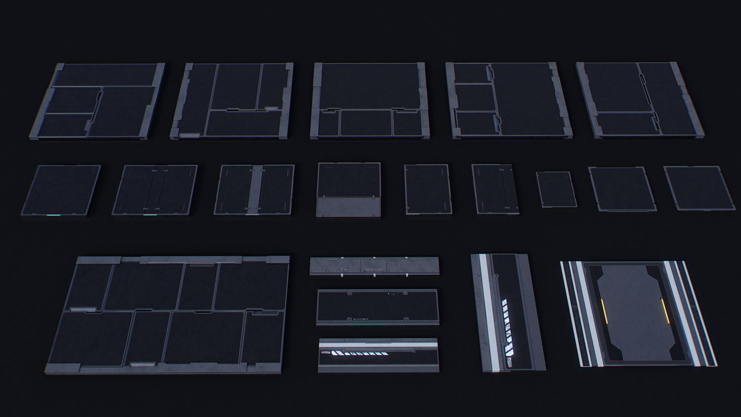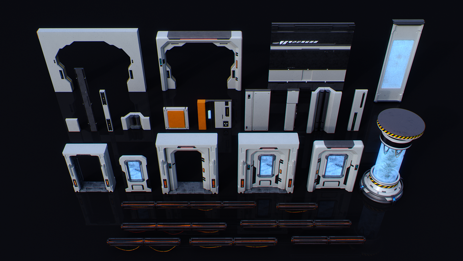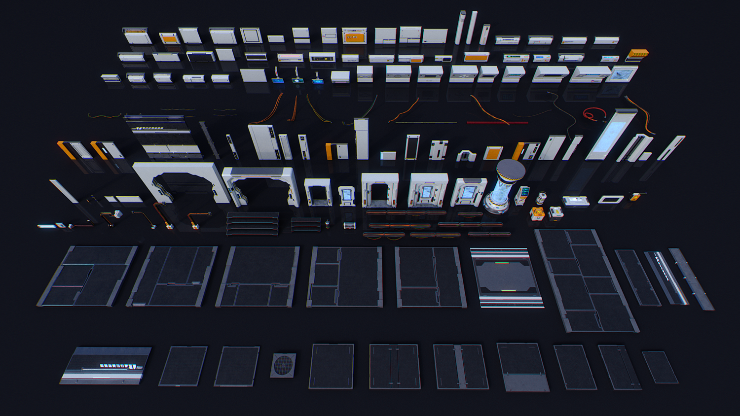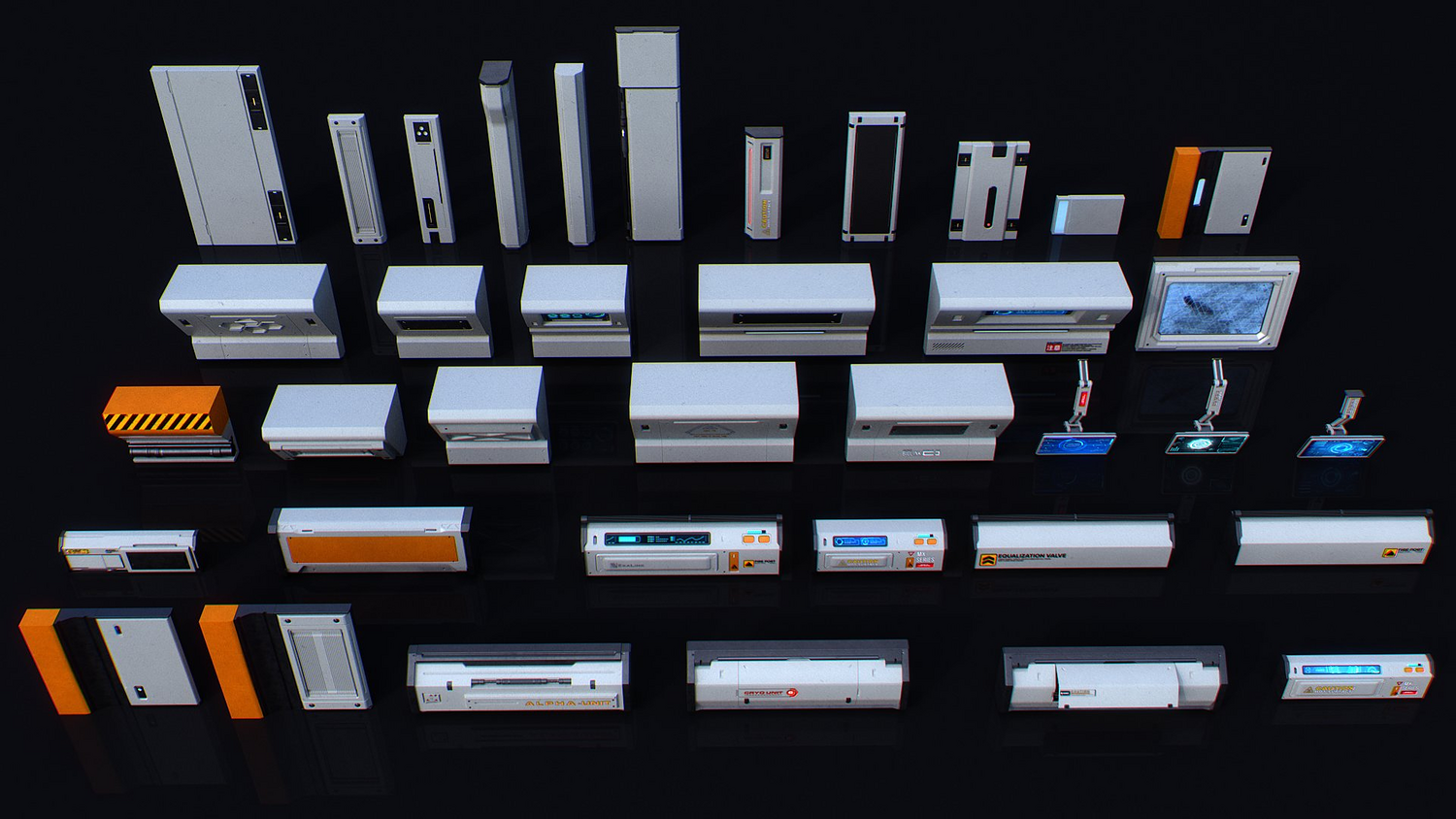 A set of original sci-fi modular elements can create high-quality sci-fi interior, sci-fi corridor and sci-fi realization room scenes, etc.