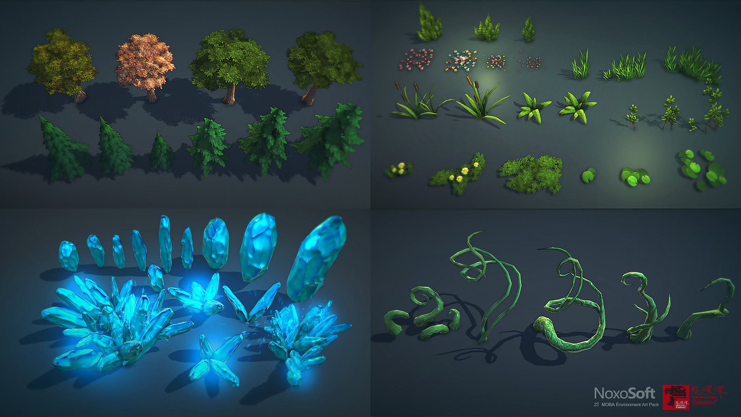 You will get: -2 demo scene for presentation and testing (5v5 map &Lists) -300+ models -40+ textures (4096x4096px shared textures) -18 FX -4 scripts -8 towers -40+ plants