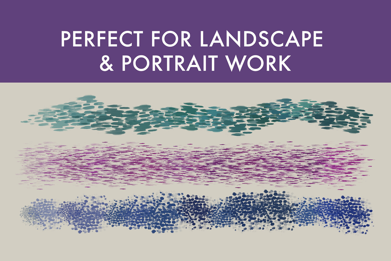 The Brushes are tested and compatible with Photoshop CC and Procreate 5.0 as well (according to the latest software descriptions you should be able to import .abr files into Clip Studio Paint v1.10.5 or newer, Affinity Photo v2.0 and Substance Painter as well, but can't guarantee)